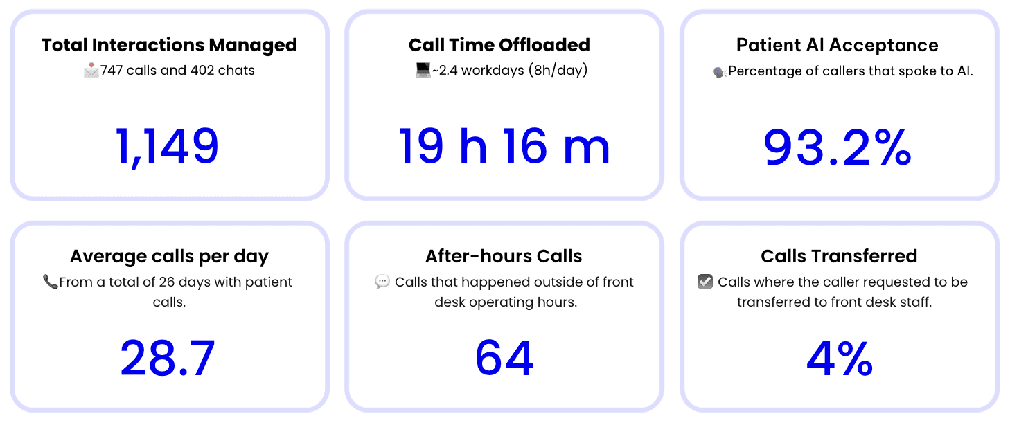 Instead of waiting on hold or calling back repeatedly, they received immediate answers for routine needs like appointments, prescriptions, and general questions. More complex issues were escalated safely to staff.